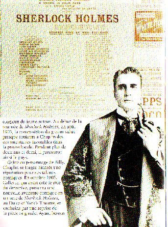 Vêtu de mon costume neuf, je fus introduit en présence de monsieur Blackmore, en personne, qui se montra tout sourire et tout amabilité. Monsieur Blackmore, que j’avais imaginé comme un être tout puissant et au regard inquisiteur, m’accueillit avec beaucoup de bonté et me donna un mot pour monsieur Hamilton, à d’administration du Théâtre Charles Frohman. Monsieur Hamilton le lut et parut amusé et surpris de ma petite taille. Je mentis naturellement à propos de mon âge : je lui dis que j’avais quatorze ans alors que j’en avais douze et demi. Il m’expliqua que je devais jouer » Billy » le petit groom de Sherlock Holmes pour une tournée de quarante semaines qui commencerait à l’automne.